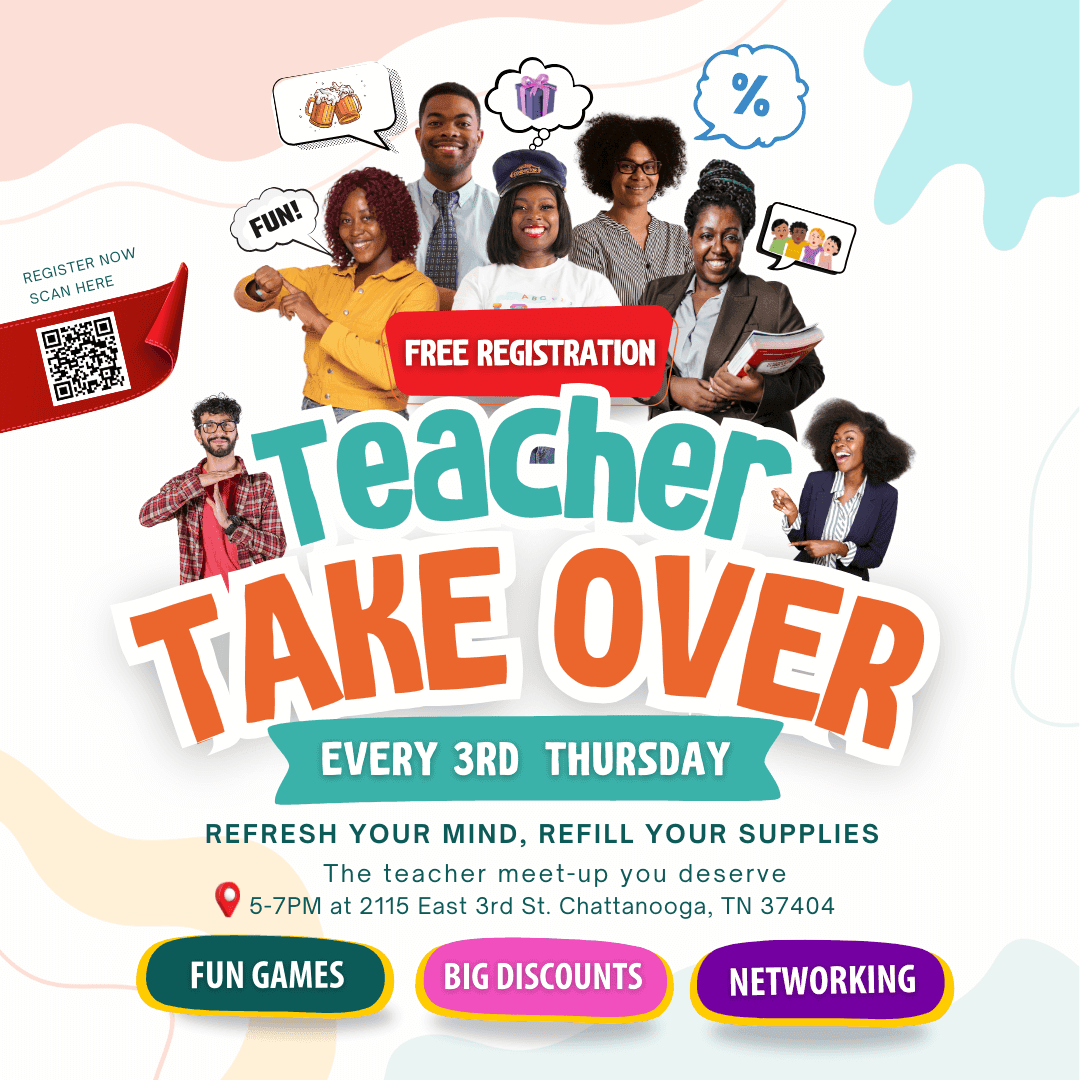 TEACHER TAKE OVER HAPPENS EVERY 3RD THURSDAY OF THE MONTH AT 5-7PM WITH EXCLUSIVE DISCOUNTS